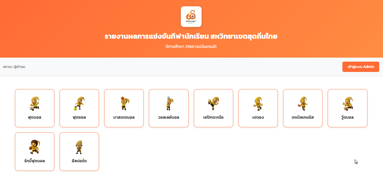 รายละเอียด : แจ้งทุกโรงเรียนสามารถดาวน์โหลดเกียรติบัตรได้แล้ว:12 ธันวาคม 2568 | รายละเอียด : รายงานผลการแข่งขันกีฬานักเรียน สหวิทยาเขตสุดถิ่นไทย